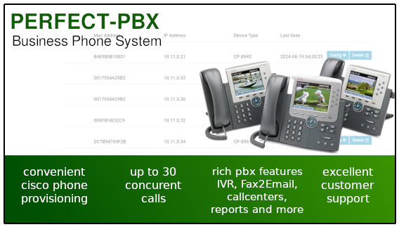 - Centrala telefonica Voip PERFECT-PBX O centrala telefonica robusta, avand toate functionalitatile necesare unei platforme de voce moderna, creata cu gandul de a profita de excesul de telefoane IP Cisco existente in piata la preturi foarte mici dar si sa ofere o exploatare simpla si intuitiva.
